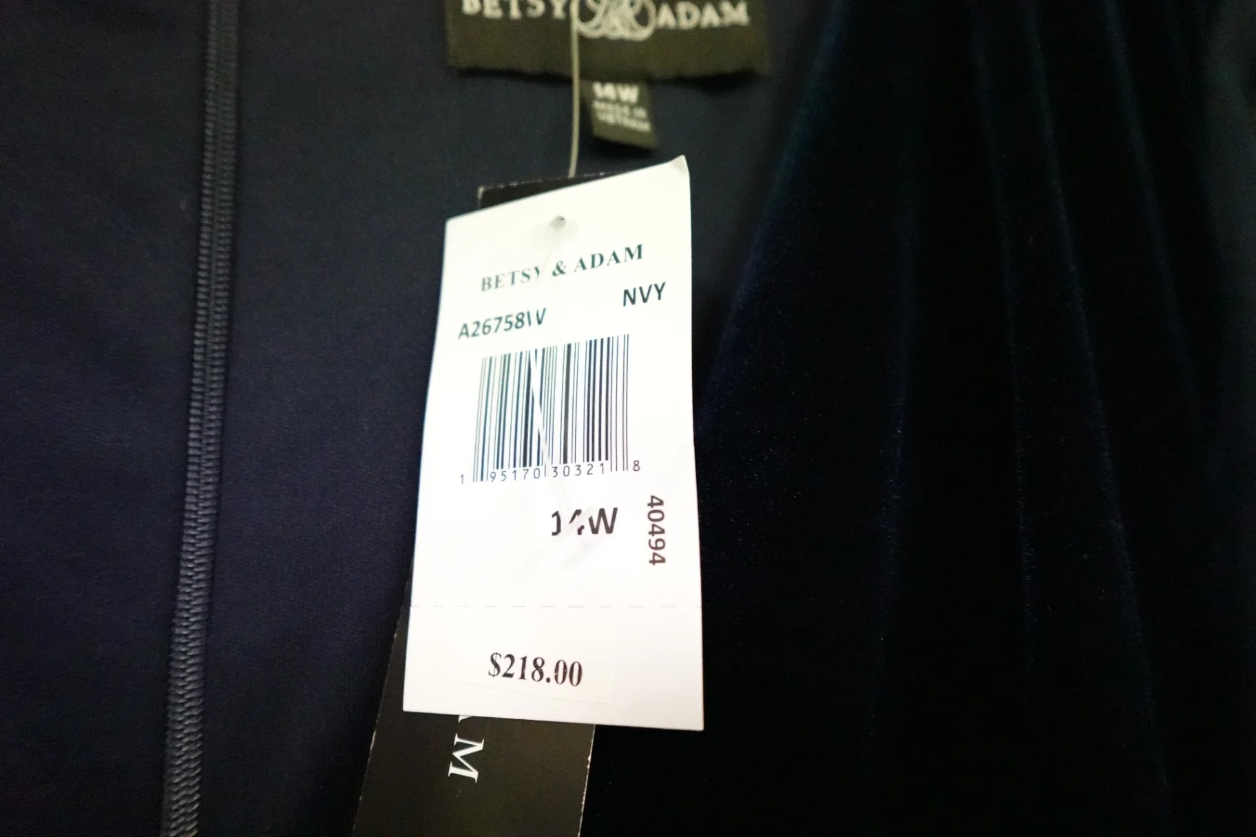 Brand: Betsey Adam Catagory:Dress Size: 14W Color: Black Fabric New with tags Material Velvet