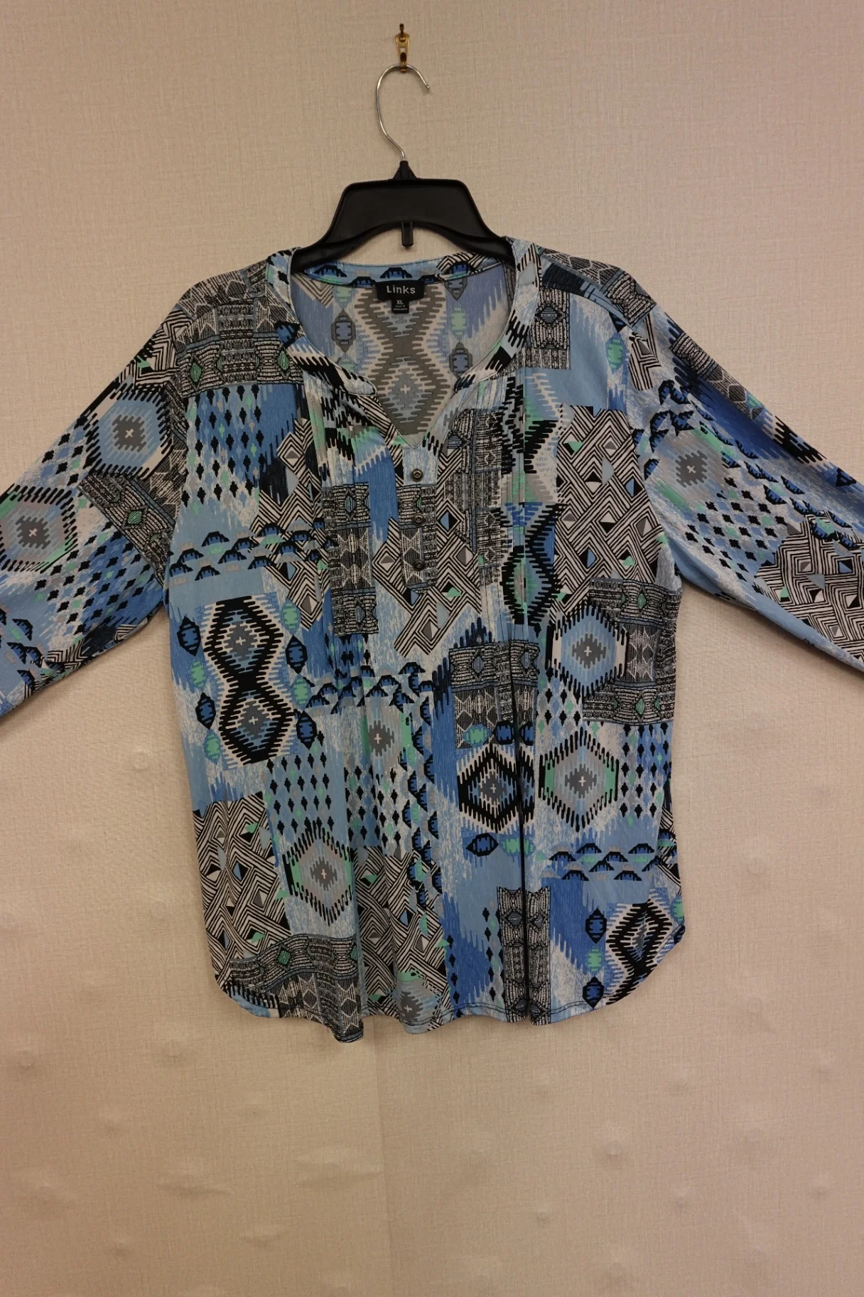 This vibrant light jacket boasts a stunning mix of blues, greens, and neutral tones in a captivating pattern. Crafted from a delicate, flowy fabric, it offers a breezy and stylish layer ideal for warm-weather outings. Its relaxed fit enhances comfort while adding a touch of boho chic to any ensemble. Perfect for casual days or dressed-up events, it commands attention with its eye-catching design.