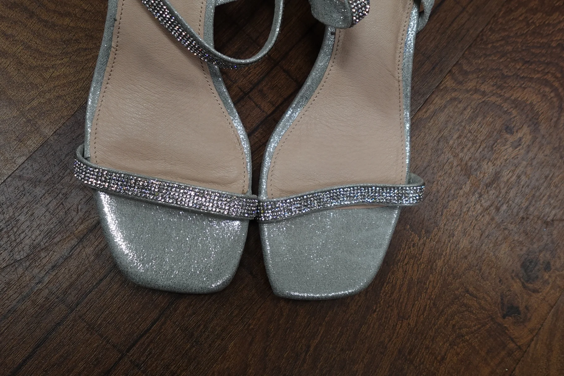 Brand: Maripe Catagory:Shoes Size: 10 Color: silver Fabric Very Good Material Cardboard with metallic lettering